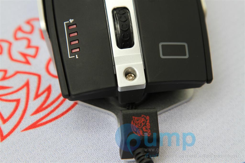ตรงด้านหน้ามีโลโก้ Battle Dragon ออกแบบตำแหน่งได้สวยงาม และปุ่มคลิกด้านซ้ายยังไม่ไฟสีเหลี่ยม ผมว่าเค๊าต้องตั้งใจให้มันเหมือนไฟหน้ารถแน่เลยครับ
