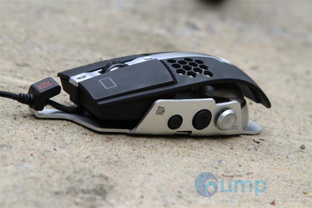 ปุ่มข้างๆ ออกแบบมาเท่ห์จริงๆ ครับ เหมือนการเข้าเกียร์รถยนต์ที่ใช้แข่ง... แต่ก็ตามมาด้วยข้อเสียคือ นิ้วจะไปโดนโดยไม่ตั้งใจบ่อยๆ ซึ่งทาง Tt เอง ก็แก้ไขโดยการ lock ไม่ให้ปุ่มทำงานได้ในขณะที่เราเล่นเกมเพื่อกันพลาดครับ