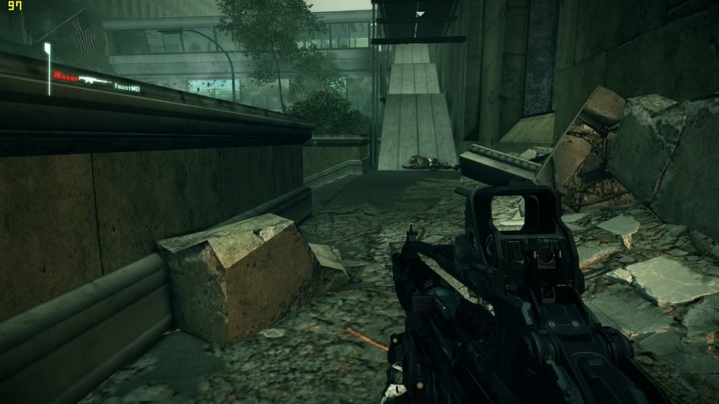 ฝ่ายป้องกันไม่ได้ใส่ และมีเลเซอร์ติดปืนมาเพือบอกตำแหน่ง + +