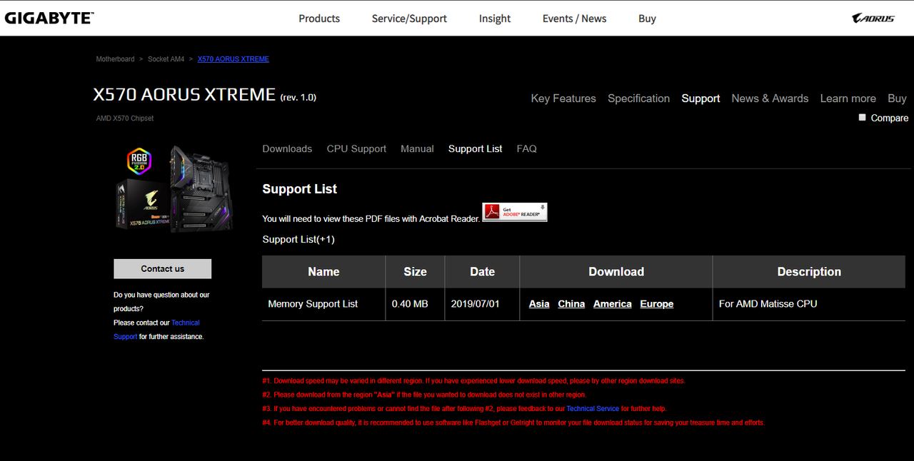 Memory QVL / X570 AORUS XTREME / 2แถว 4400 / 4แถว 4000