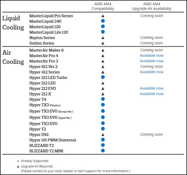 ส่วนพวก Noctua , Phanteks คงใช้วิธีแจกขา AM4 แบบนี้เหมือนๆ กัน ส่วน Cooler Master ณ ตอนนี้มีนโยบายแจกขา AM4 ฟรี แล้วน่ะ แต่ไปอ่านว่ารุ่นไหนใช้ได้บ้างที่นี่ http://www.coolermaster.com/we-are-r...ur-am4-socket/