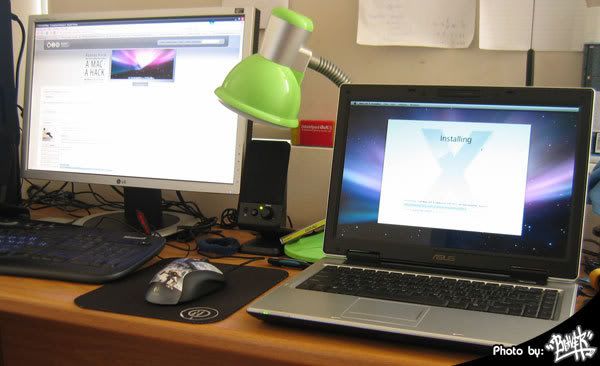 หลังจากที่ไฝ่ฝันมานาน วันนี้ได้มีโอกาสจับตัวเป็นๆซะทีกะOSXครับ หลังจากพยายามลงมาจั้งแต่สมัย10.4.9แต่ไม่สำเร็จ มาถึงเมื่อวานผมได้HDDคืนมาจากเพื่อนแล้วก็เลยเอามาFormatเมื่อเช้า แล้วก็คิดๆว่าจะลงอะไรดีระหว่าง Vista กะ OSXแต่Vistaผมเคยลองแล้วไม่เวิร์คเท่าไหร่นะ ใช้แล้วปวดใจกะอีตา"บิล"เหลือเกิน(ว่าแล้วต้องหยิบหนังKill Billมาดูซะหน่อย อิๆ) ก็เลยมาเป็นโปรเจกLeopard On ASUS!!!!!