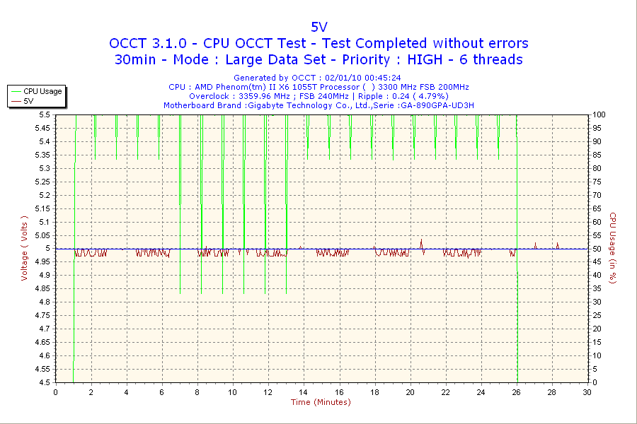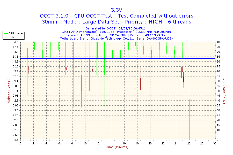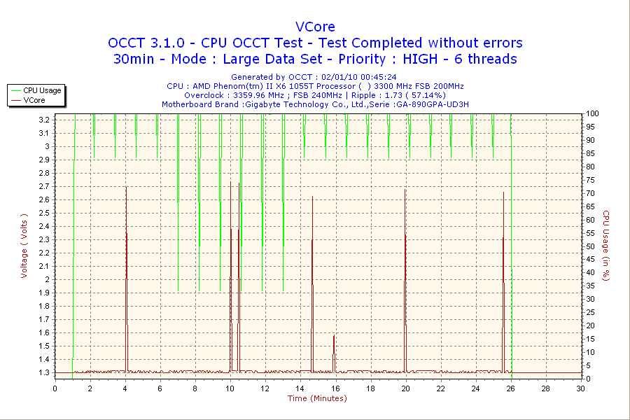 ผมลองทดสอบ CPU OCCT กับ CPU Linpack ปรับทั้งสูงสุดต่ำสุด ไม่ผ่านจบอย่างรวดเร็วเลย ส่วนแบบ PSU กับ GPU จบแต่ขึ้น error ครับ
