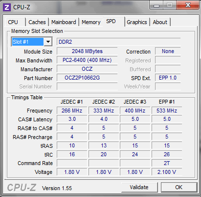 จาก CPU-Z มันเป็นแบบนี้ ดูเหมือนวิ่ง 533 ก็เหมือนจะโอเคสำหรับ PC 8500 ใช่ไหมครับ