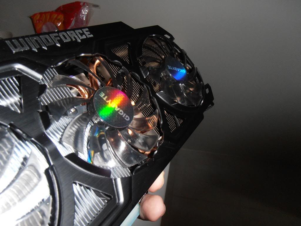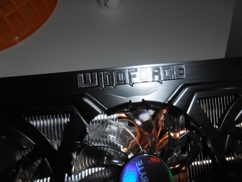 ฝาครอบเป็นแบบอลูมิเนียมสีดำด้าน พร้อมตัวหนังสือชูโรงระบบระบายความร้อนของเขาละ "Windforce"