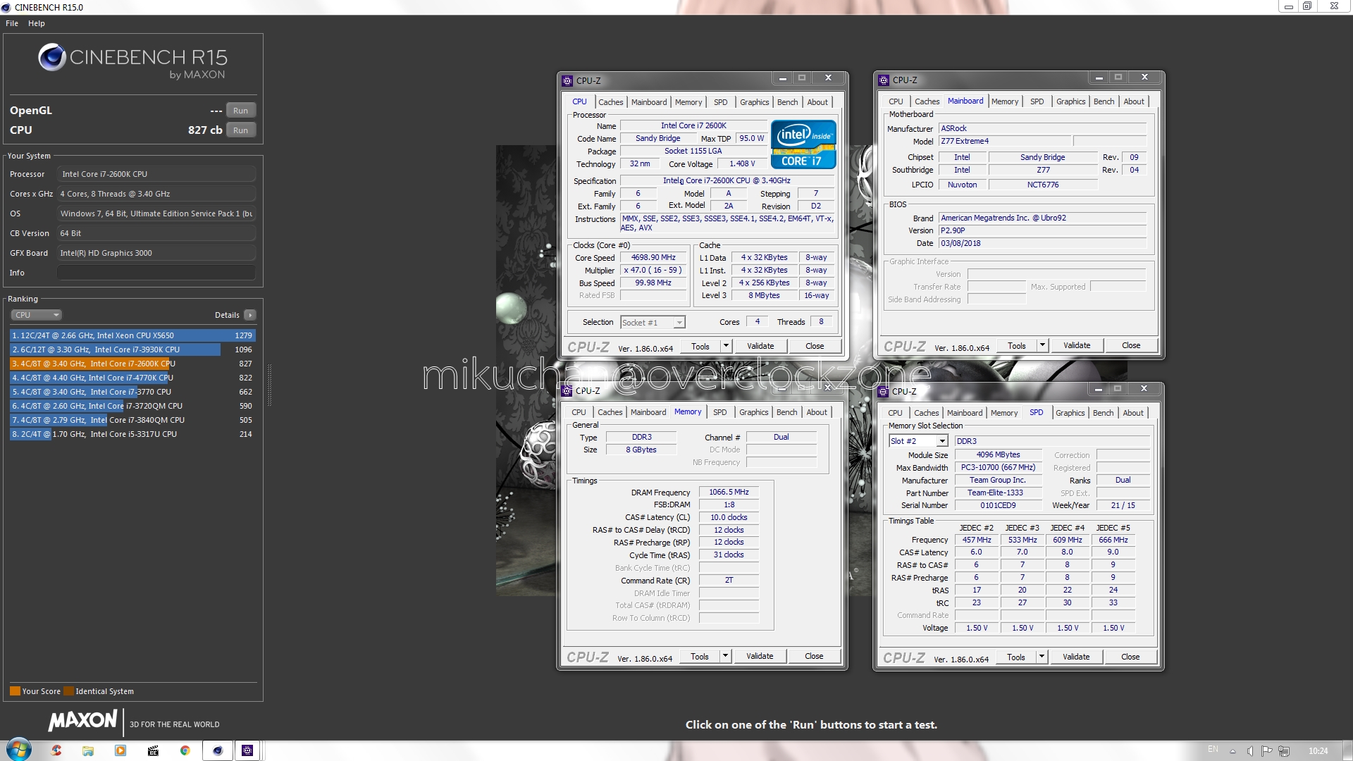 มาเริ่มที่ โปรแกรมยอดฮิต อย่าง CINEBENCH R15 และ CPU-Z