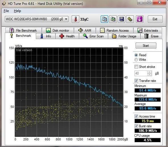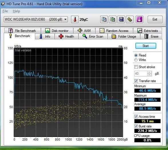 เทสบน HDtune ได้สูงสุดที่ 85 - 88 MB/sec เท่านั้น แถมบ่อยครั้ง ค่าต่ำสุดยังลงไป 10 - 20 MB/s