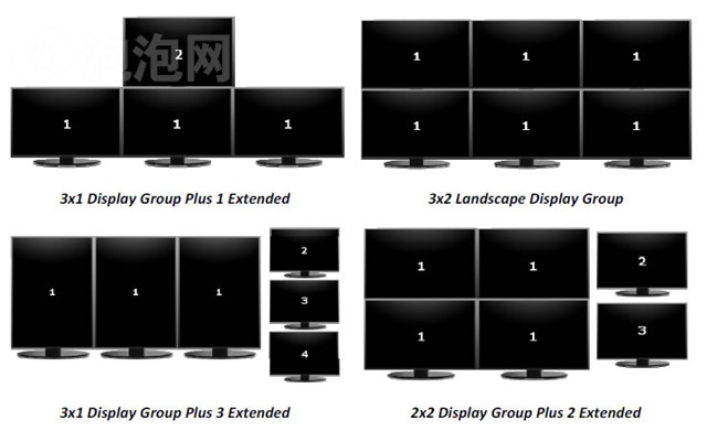# Common pattern is a combination of six 30-inch display, to achieve a resolution of 7680x3200;