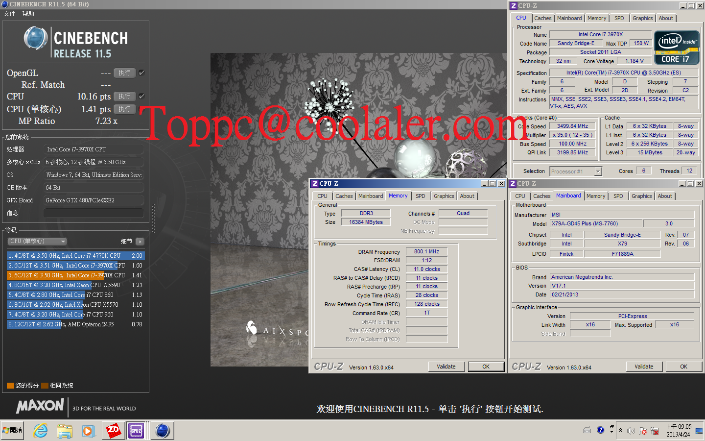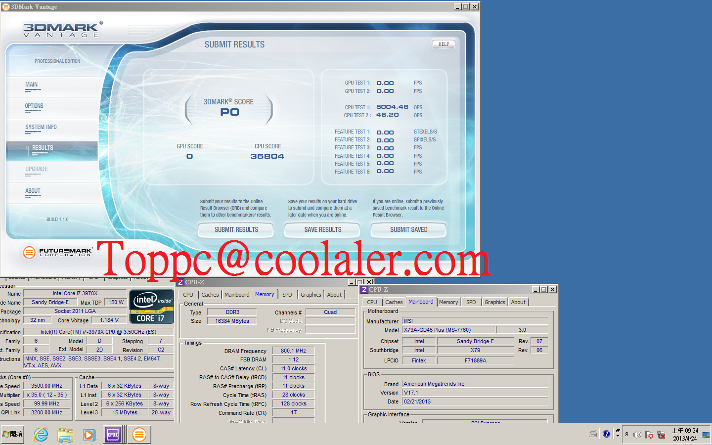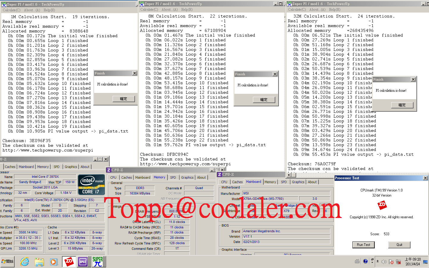 user toppc ได้ทำการทดสอบตัว i7-4960X บนบอร์ด X79 ของ MSI แต่ไม่มีผล o/c มาด้วยแต่อย่างใด