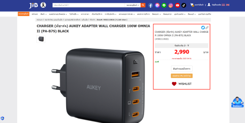 - AUKEY Dynamic Detect จ่ายไฟด้วยช่อง USB-C Power Delivery 3.0 สูงสุดที่ 45W
