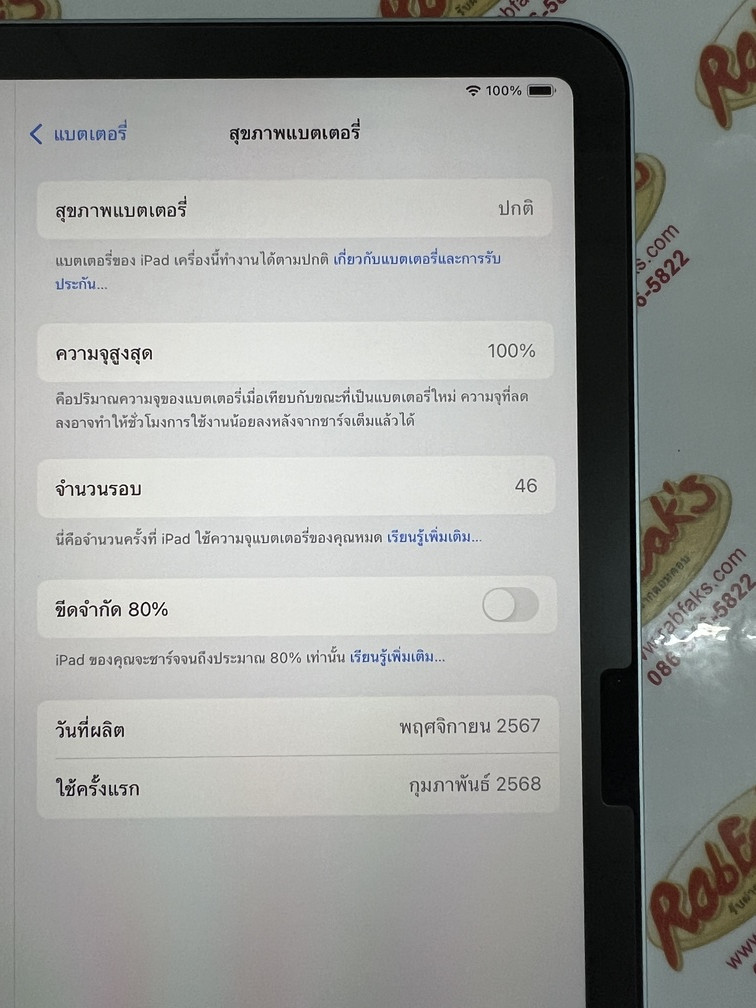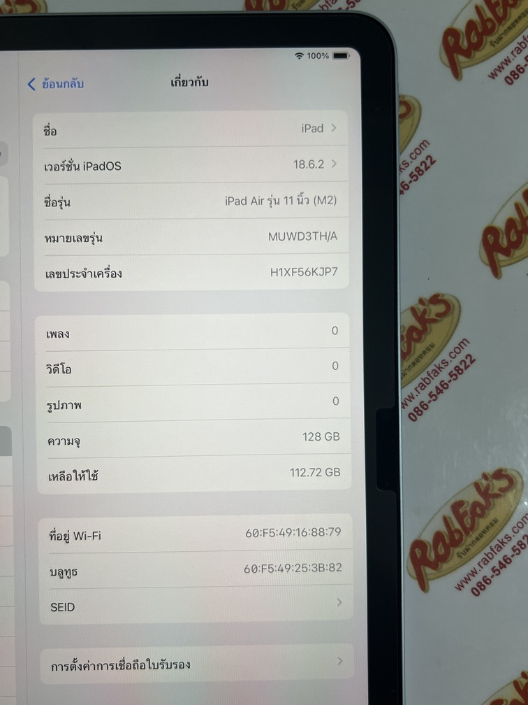 ประกาศขายแท็บเล็ตจากค่ายดังฝั่ง Apple เป็นรุ่น iPad Air 6 (M2) 11 นิ้ว WiFi ใส่ซิมไม่ได้ครับ หน่วยความจำตัวเครื่อง128GB สภาพสวย95% การันตีความใหม่ สุขภาพแบต100% จำนวนรอบชาร์จแค่ 46 รอบ สีBlue เครื่องศูนย์ไทย อุปกรณ์ครบกล่องมี ตัวเครื่อง+หัวชาร์จ+สายชาร์จ+คู่มือ+กล่อง หน้าจอติดฟิล์มให้แล้วครับ รีเซ็ตเครื่องให้ใหม่แล้วพร้อมใช้งานได้ทันที ไม่ติดiCloud ประกันยาวๆหมดวันที่ 27 กุมภาพันธ์ 2570