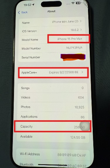 ประกัน (warranty): AppleCare+ Expires : 27/09/2568 ( เพิ่งหมดประกัน )