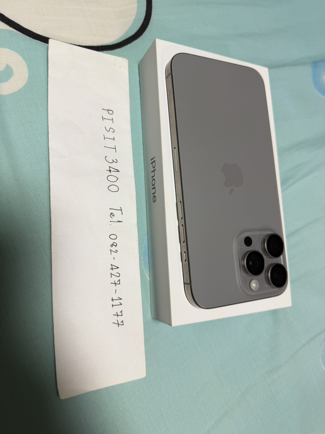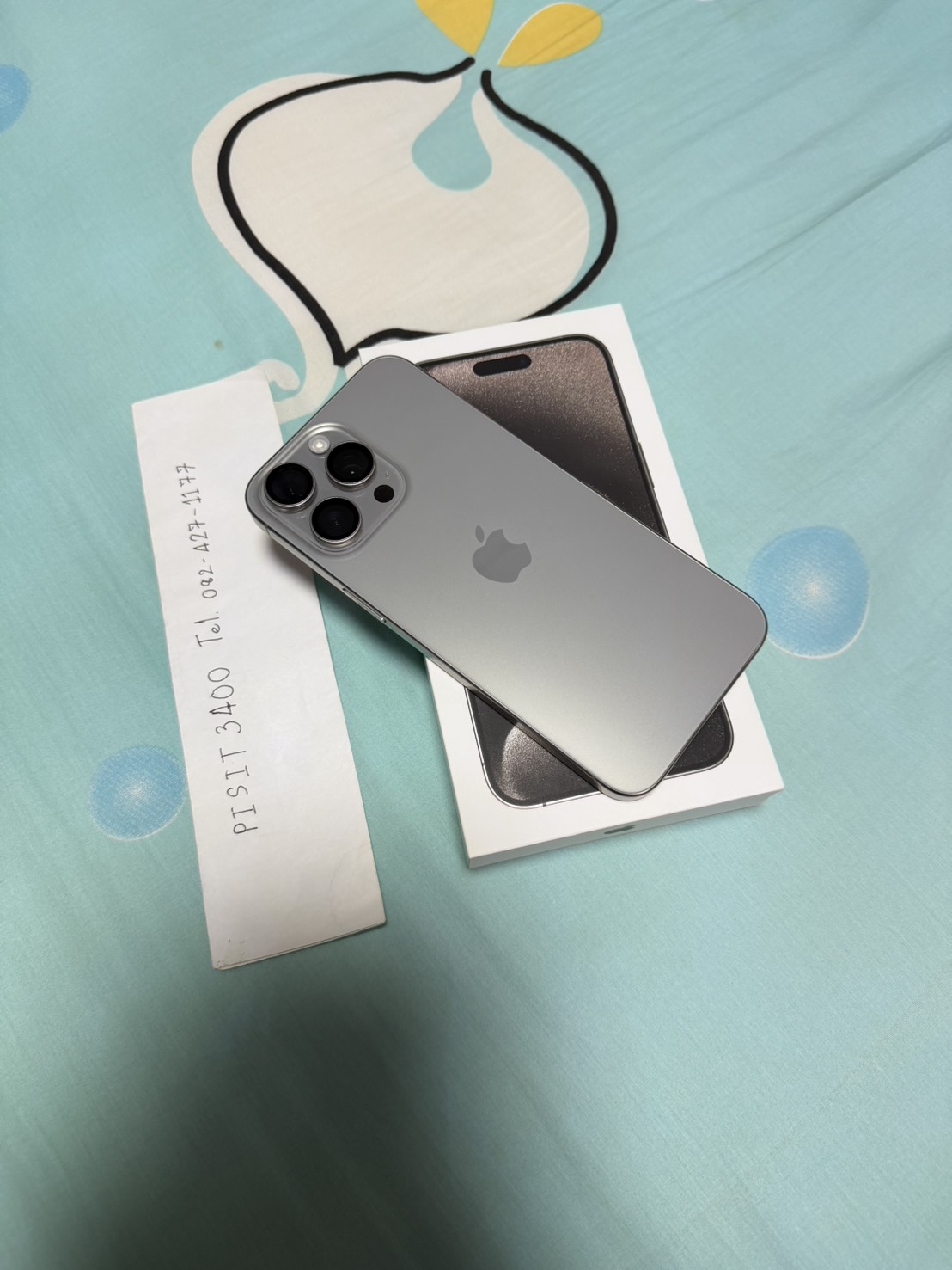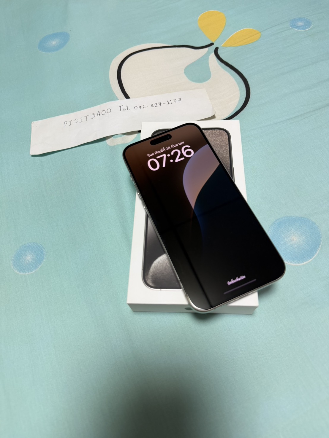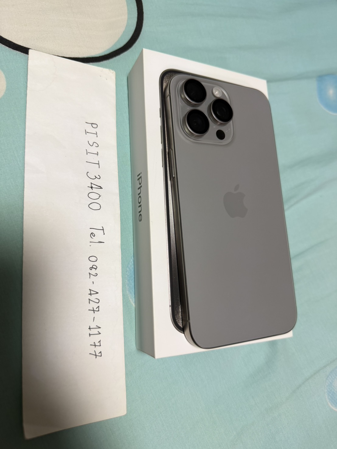 อุปกรณ์ (device): ตามรูป iPhone 15 Pro Max สี Natural Titanium, 256 GB มีเฉพาะตัวเครื่อง