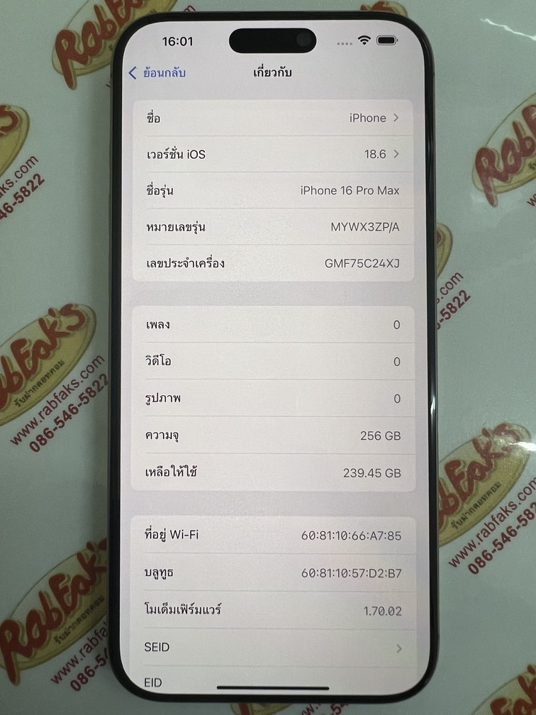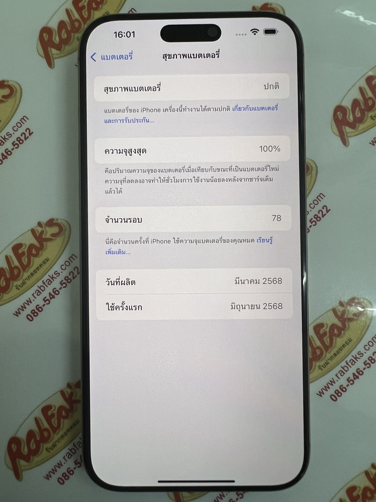 ประกาศขายโทรศัพท์มือถือสมาร์ทโฟน จากค่ายดังฝั่ง Apple เป็นรุ่น iPhone 16 Pro Max (เป็นตัวโปรแม็ค จอใหญ่สุด กล้องหลัง3ตัว) หน่วยความจำตัวเครื่อง256GB จอใหญ่6.9นิ้ว สภาพสวย95% การันตีความใหม่ สุขภาพแบต100% รอบชาร์จแค่78รอบ เครื่องสีDesert titanium เครื่องศูนย์ไทย อุปกรณ์ไม่มีนะครับ มีแต่ตัวเครื่อง ติดฟิล์ม หน้า หลัง กล้องหลัง ให้แล้วครับ รีเซ็ตเครื่องให้ใหม่แล้วพร้อมใช้งานได้ทันที ไม่ติดiCloud ประกันยาวหมดวันที่ 1 มิถุนายน 2569 ปีหน้า
