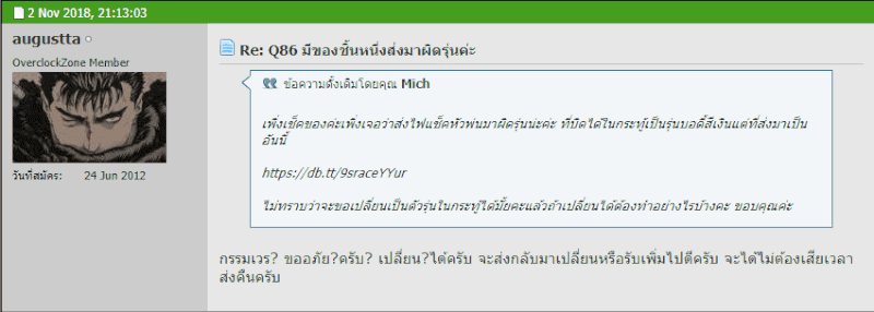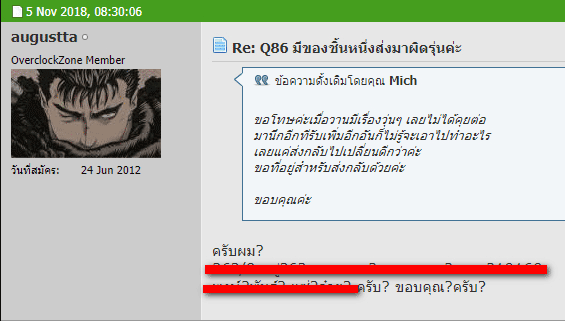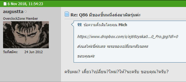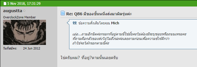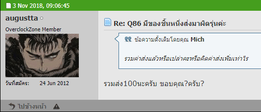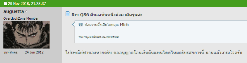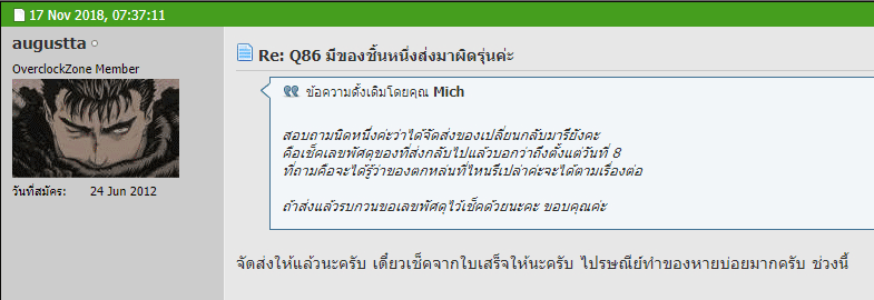 1. คุณ augustta ส่งจริงแต่ทำใบเสร็จหายแล้วด้วยเหตุผลอะไรสักอย่างจึงไม่ตอบ