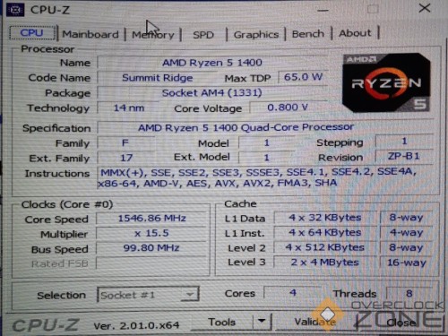 CPU RYZEN 5 1400 4 Cores/8 Threads ร า ค า 1,700 บาท
