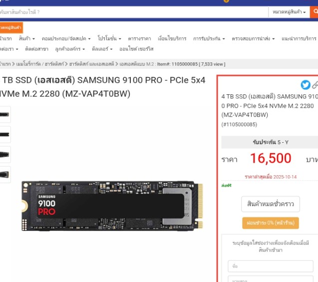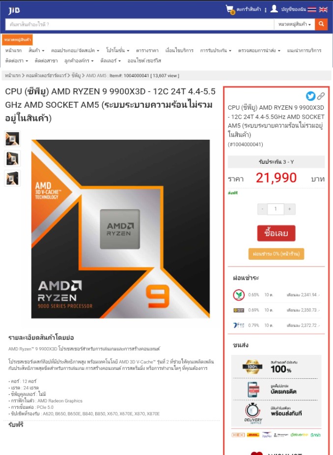 คอมชุด RYZEN 9 9900X3D+X870E HERO+ASROCK RX 9070 XT+SAMSUNG 9100 PRO 4TB+PSU1000W