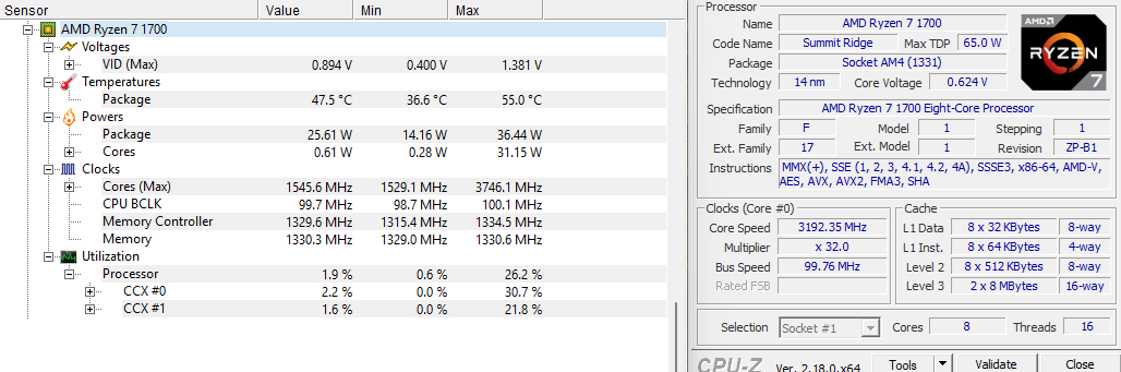 1. CPU: AMD Ryzen 7 1700 (8 Core / 16 Thread)
