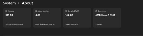 Ryzen 5 5500 /ram 16G M.2 500G / HHD 500G/RX6500XT 4Gb /PSU Corsair 550W /Case Montech