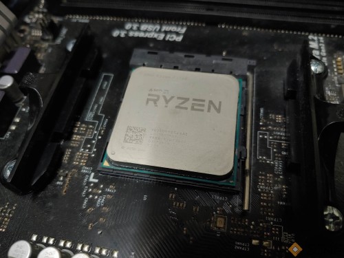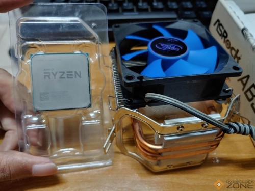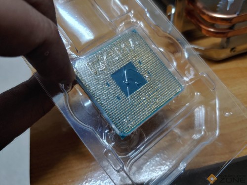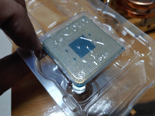 CPU พึ่งถอดออกจากบอร์ดตามภาพขาไม่งอแน่นอน มีกล่องของ Ryzen 5 ใส่ให้