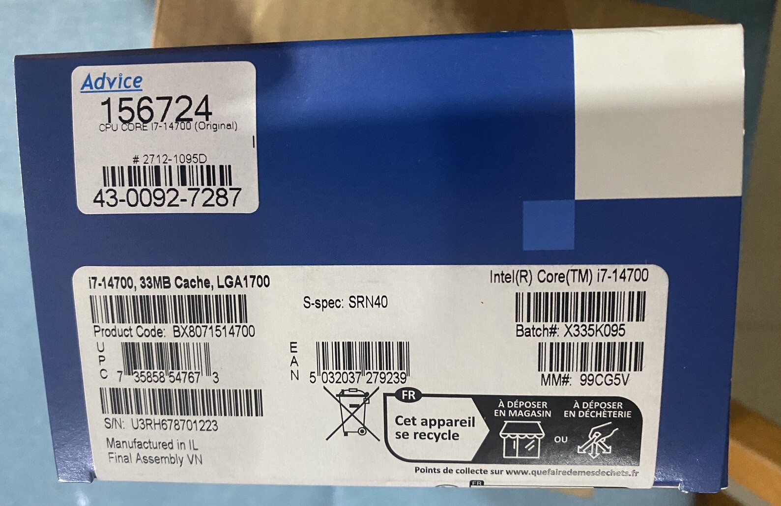 I7 14700 ของใหม่ ยังไม่แกะกล่อง ประกัน Advice เริ่ม 1/2024