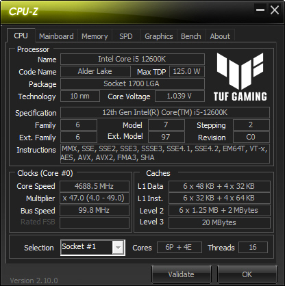 CPU มือสอง Intel Core i5-12600K 10C 16T 3.7GHz ตัวแรง