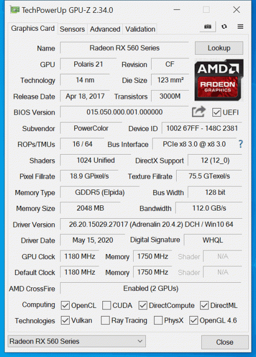 PWC AMD RX560 2G