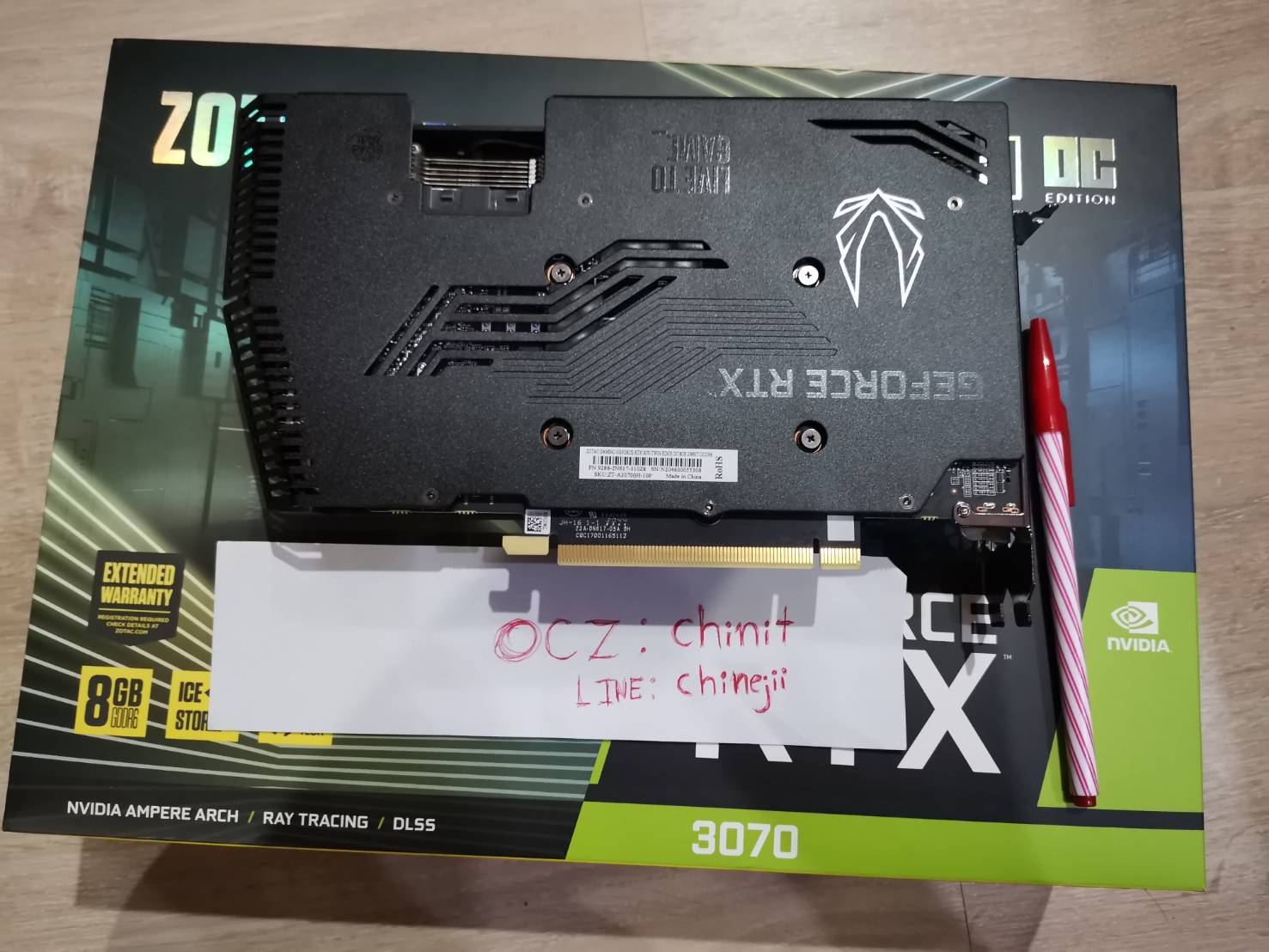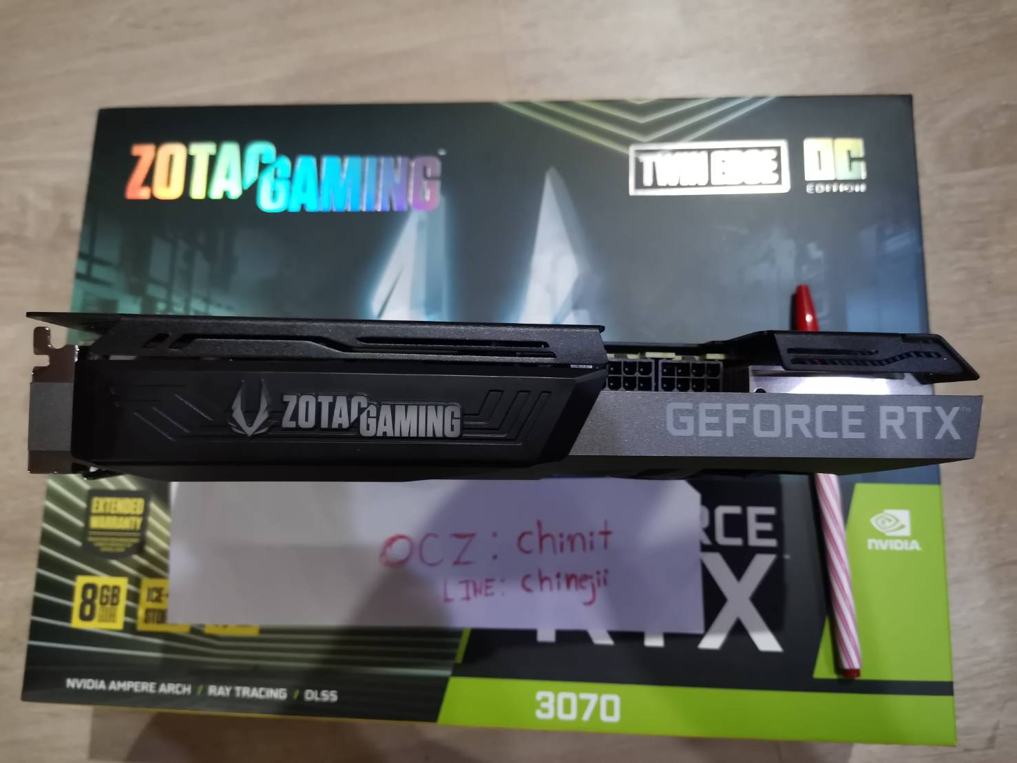 ขาย การ์ดจอ RTX3070 Zotac Gamming OC 8GB อุปกรณ์ครบกล่อง การใช้งานไม่ค่อยได้ใช้ช่วงนี้ไม่ว่างเลย ใช้สูงสุดแค่ดูยูทูปกับพิมพ์งาน ประกันศูนย์หมดแล้วช่วงต้นปีนี้ ยังใช้ได้อีกนานสภาพยังสวยๆ ขนาด 1080ti ยังใช้ได้อยู่จนปัจจุบัน