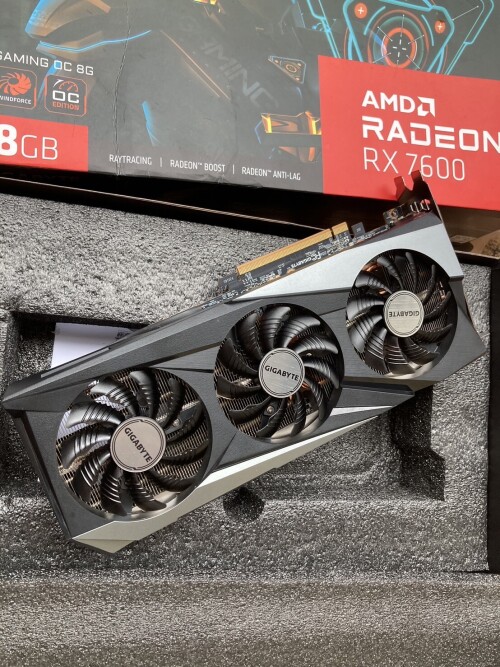 gig rx7600 8gb gaming oc มีกล่อง สภาพสวยมาก ไม่มีตำหนิ ปกติทุกอย่าง ประกัน 6|2026 ราคา ขายแล้ว แรงพอๆ rtx4060 ไม่เคยแกะ fulload 59 องศาเย็นๆ