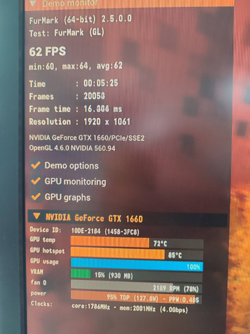เดิมๆไม่เคยแกะไม่ร้อน เทสFurmark 5นที+ 72องศาเย็นๆ