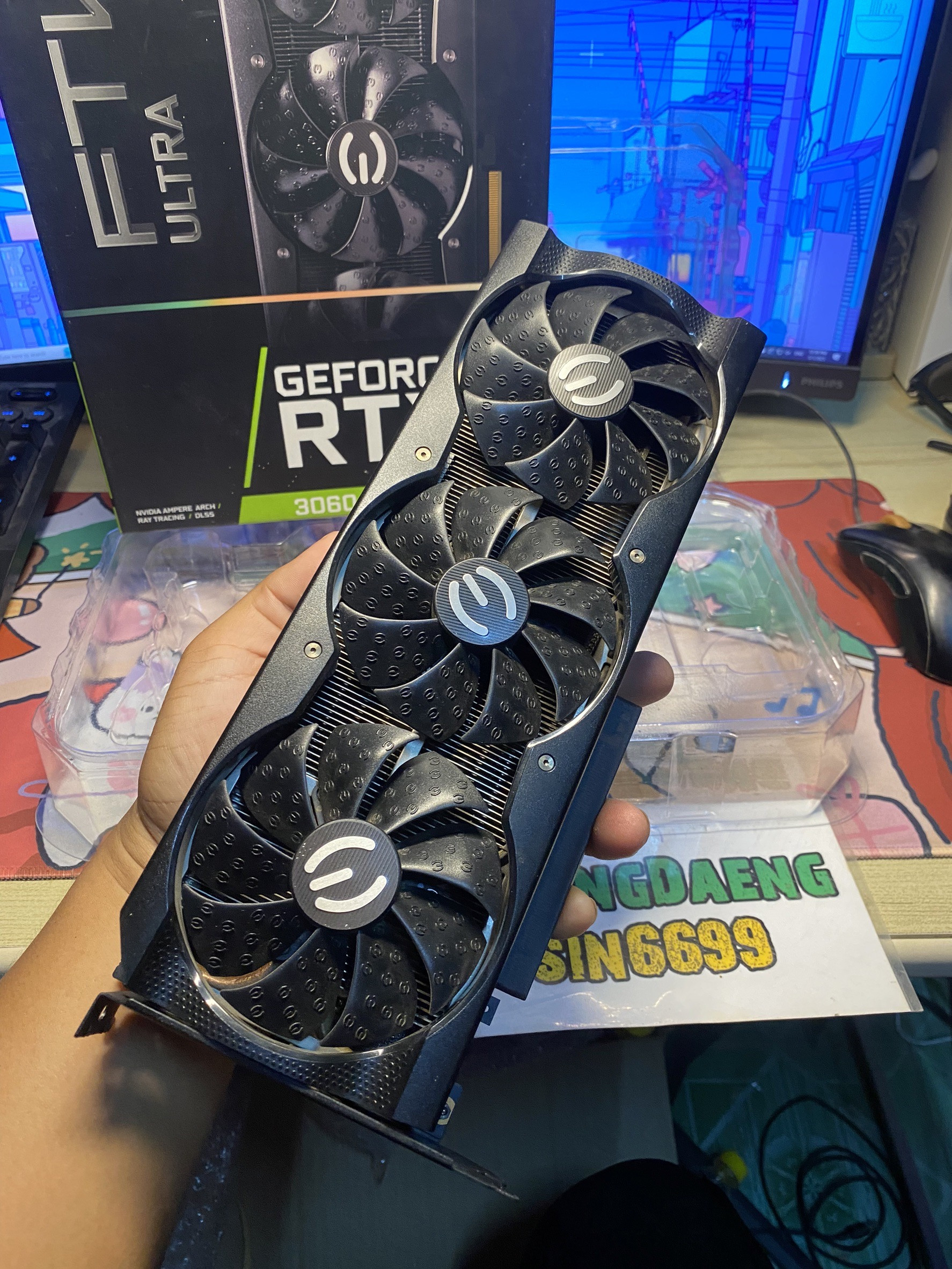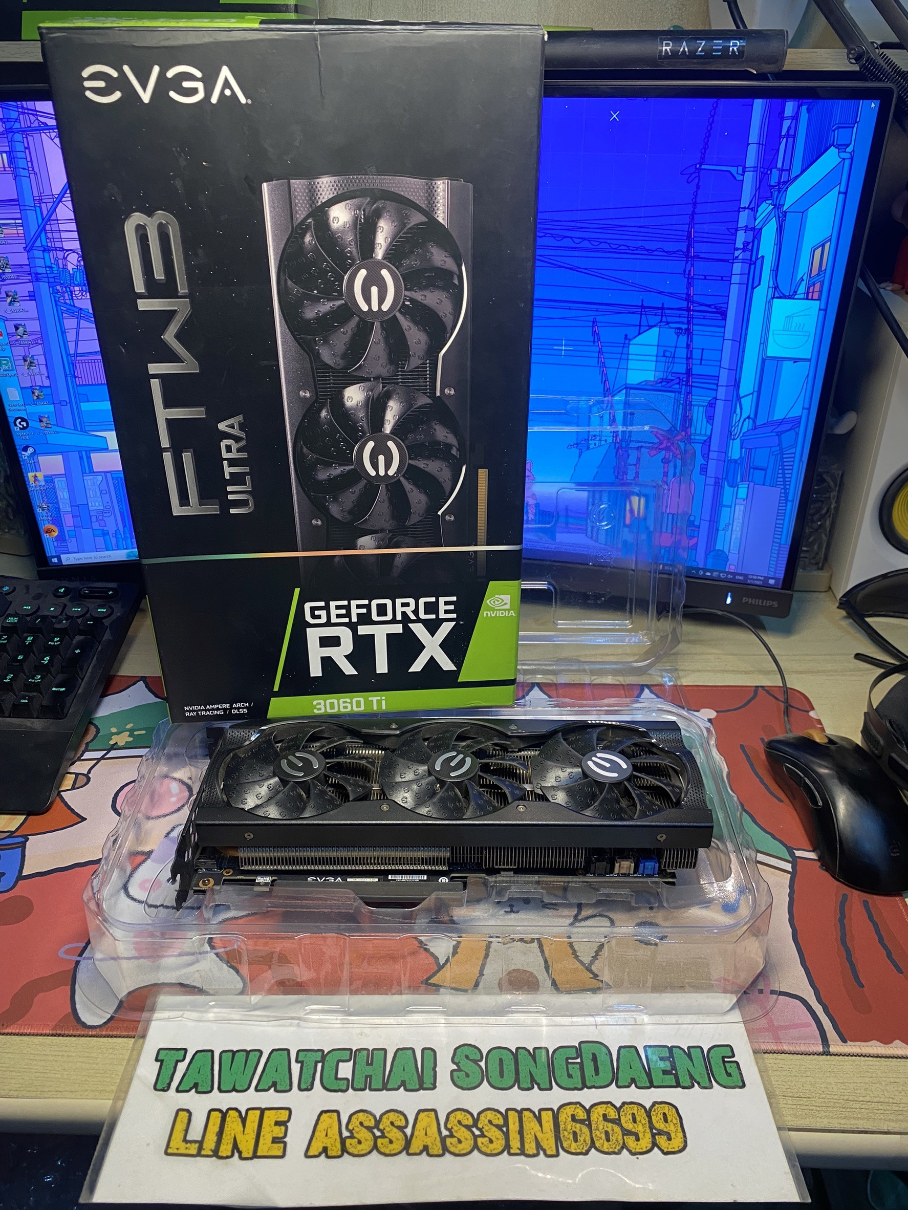 EVGA RTX 3060 Ti 8GB FTW3 ULTTA ภาพเงางามทุกจุด การ์ดมือเดียว ไม่ขุด 100% ถอดจากเครื่องสดๆ