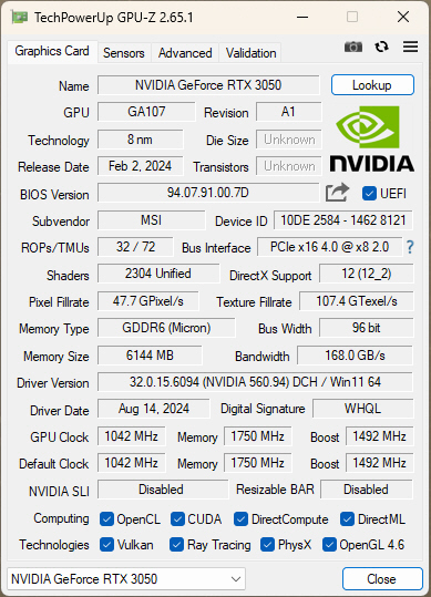 การ์ดจอมือสอง MSI RTX 3050 VENTUS 2X 6GB DDR6