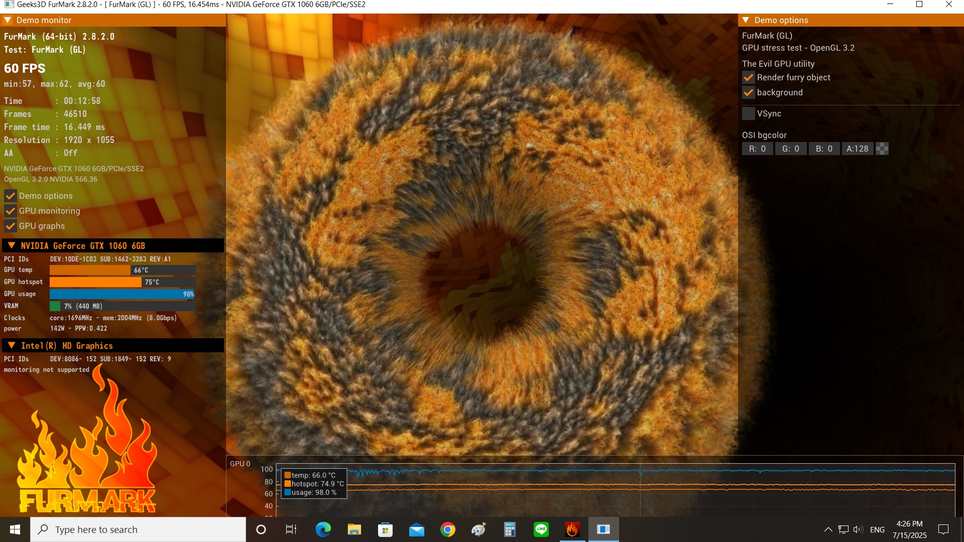 ความร้อนขณะเทส FurMark3D