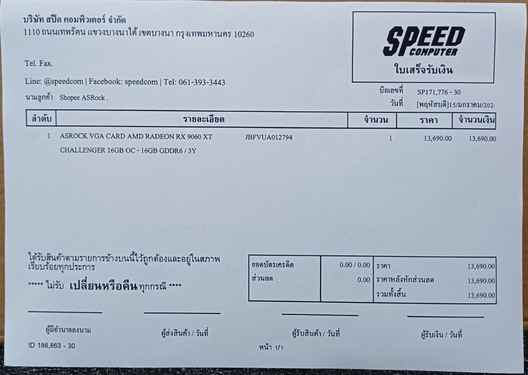 • [ขาย] #ขายแล้ว# ASRock RX 9060XT 16GB Challenger OC มือ 1 ประกัน Speed Com/SVOA