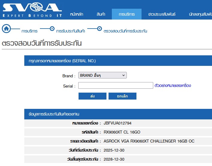 ประกันร้าน Speed Computer ถึง 14/01/2029 ส่วนประกัน SVOA ถึง 30/12/2028