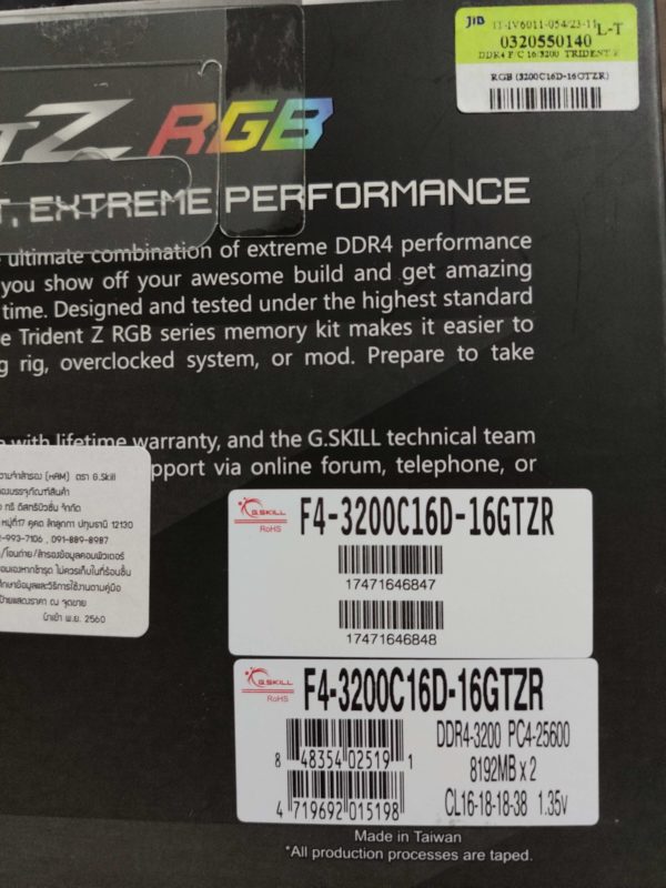 ขายแรม DDR4 8x2 3200 Gskill Trident Z RGB