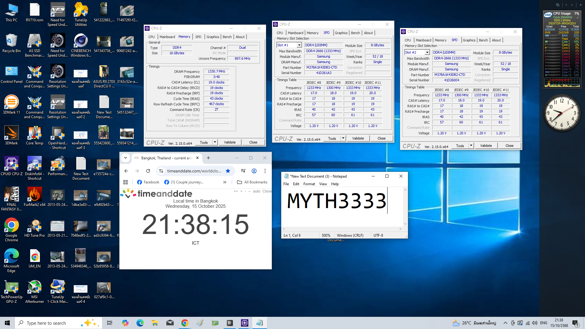 กทม ขาย ram ddr4 8+8 = 16gb bus2666 ราคา พ่อค้า 550 รวมส่ง