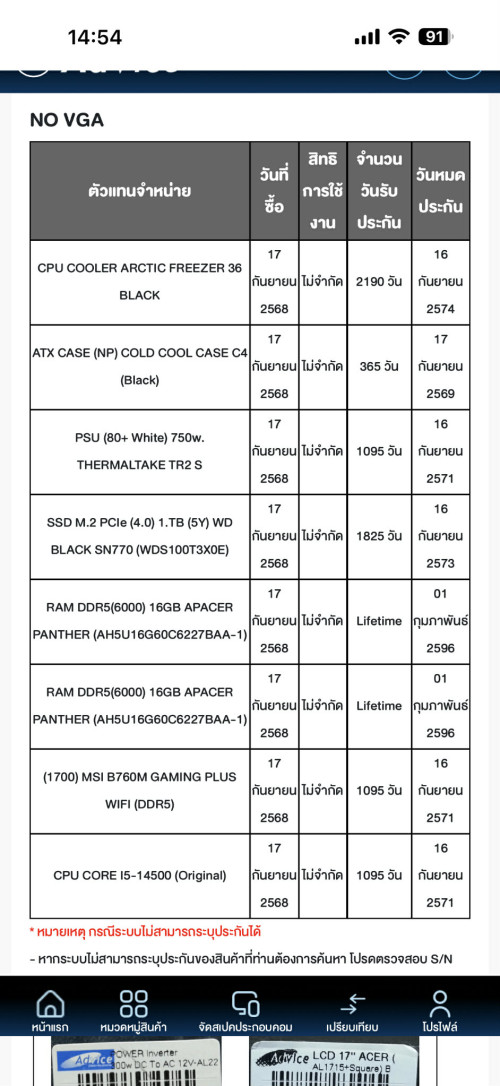 -กล่องละ 2350 บ. รวมส่ง/มารับเอง 2300 บ./ประกันศูนย์ SYNNEX 09/2027 +ประกันร้านให้ 7 วันจากวันที่รับสินค้า/ มี 1 กล่อง/มีกล่อง,มีฝาหลังบอร์ด