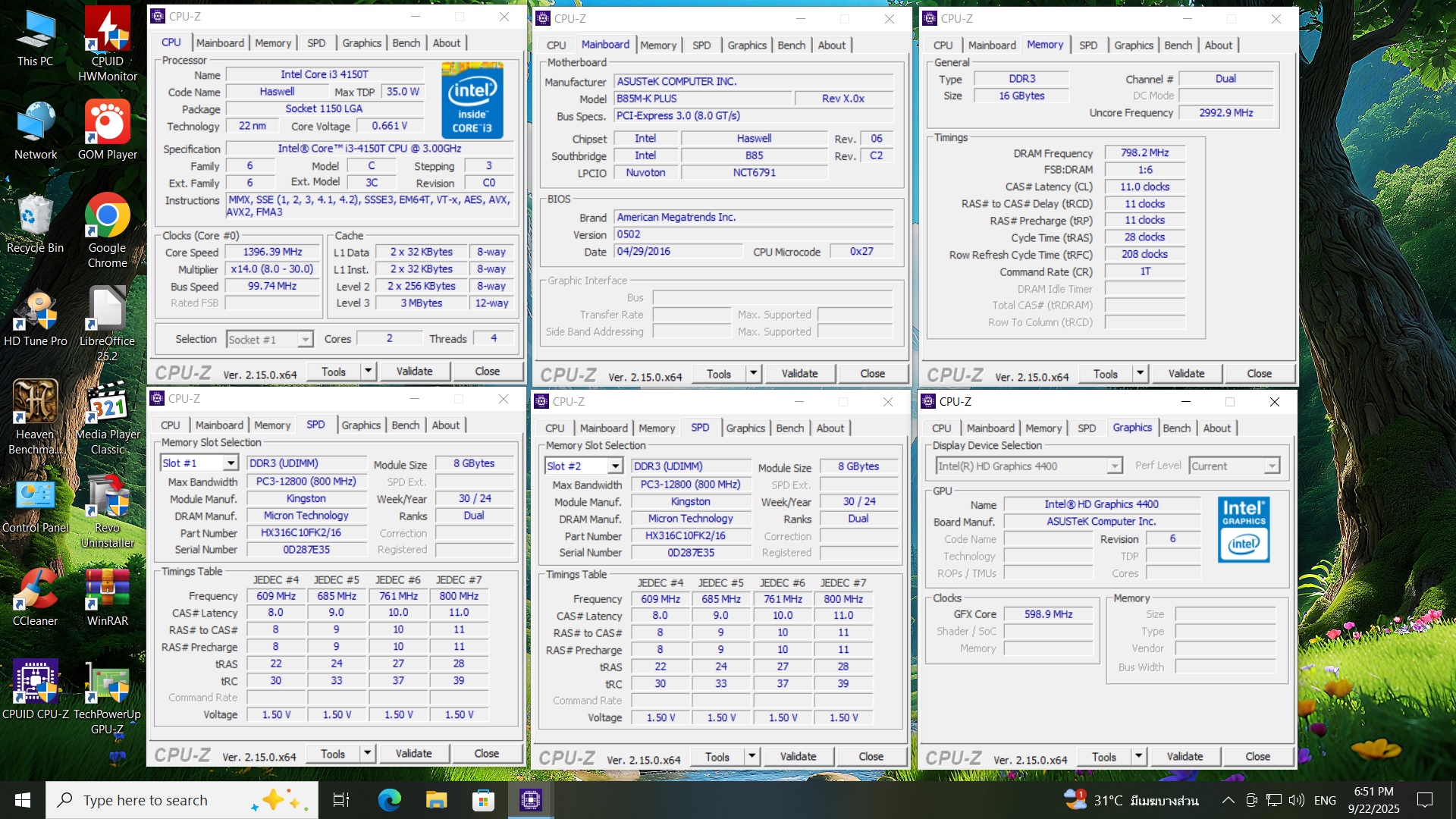 เมนบอร์ด ASUS B85M-K PLUS ไบออสล่าสุด มีฝาหลัง + i3-4150T พร้อม Sink
