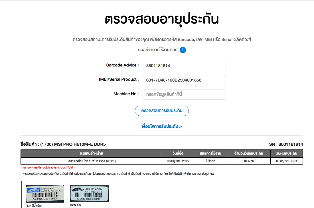 ทดลองเครื่องใช้งานครั้งเดียว ประกัน advide / synnex ถึง 6/71