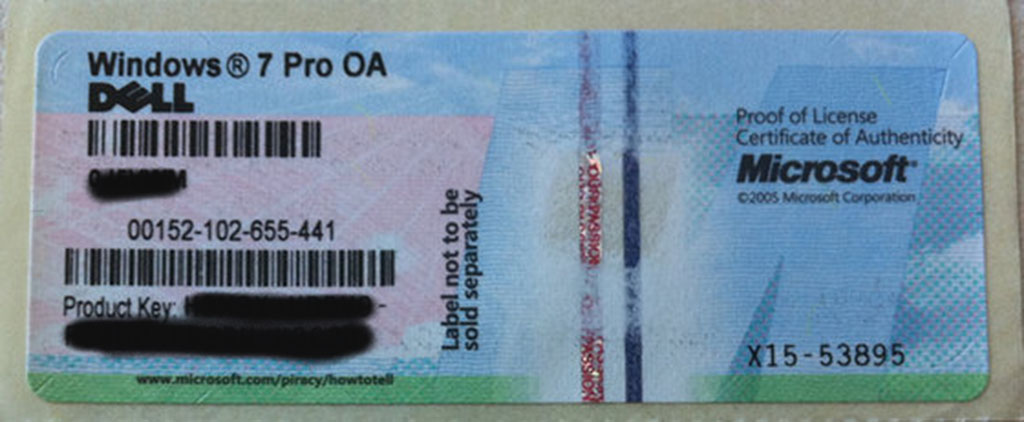 Windows 7 PRO พร้อม สติ๊กเกอร์ License แท้ 100%