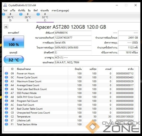 - ชั่วโมงเปิดใช้งาน/จำนวนการเขียน อาจคลาดเคลื่อนเล็กน้อย เพราะเพิ่งลงวินโดว์ใหม่แล้วถอดออกครับ