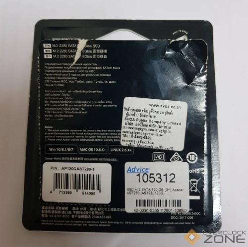 ขาย M.2 SATA 120GB Apacer AST280 ประกัน Advice ถึง 26/02/2567
