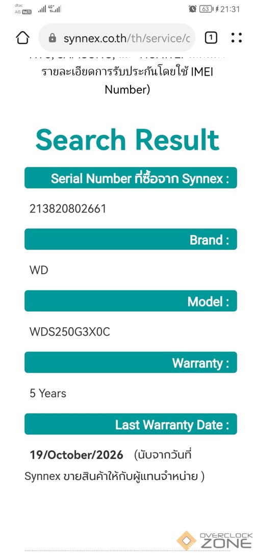 -ใช้งานปกติ -ประกัน Synnex : 19/10/2026