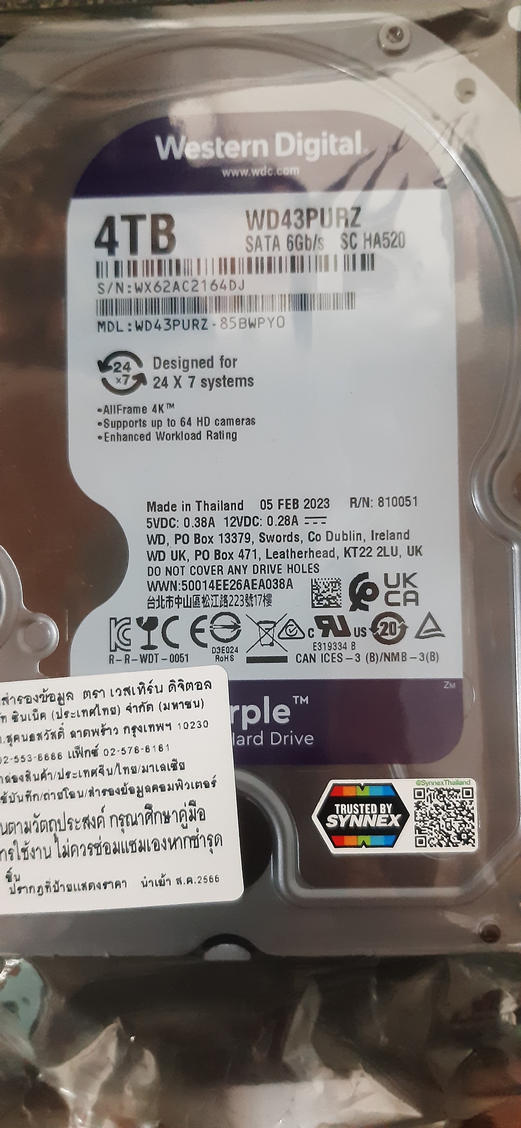 4 TB HDD CCTV WD PURPLE ของใหม่ ประกัน synnex 11/09/2026 ขายหมดแล้ว