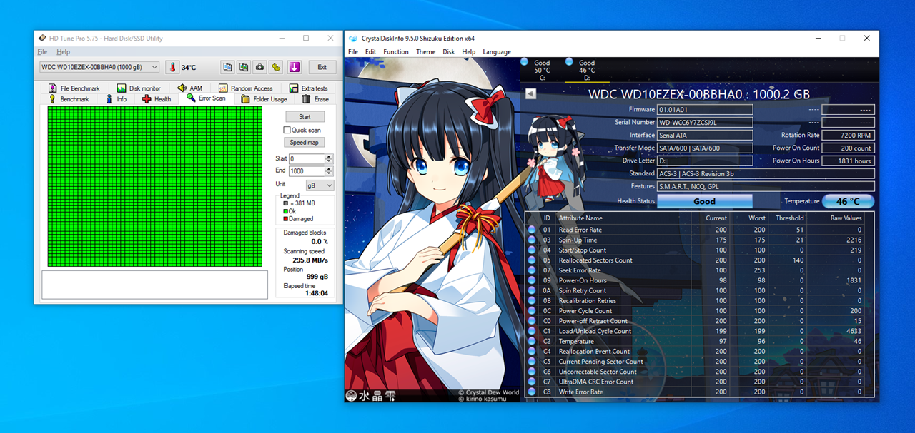 2. HDD WD Blue 1TB SATA-III - ใช้งานได้ตามปกติ ไม่ติดสี อายุการใช้งานแค่ 1800 ชั่วโมงเท่านั้น