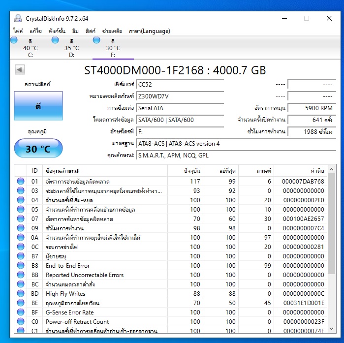 ใช้งานปกติ ชั่วโมงใช้งานน้อย เป็น hdd ที่เอาไว้เก็บข้อมูล ไม่ใช่ถอดจากกล้อง ส่วนมากนอนกล่อง