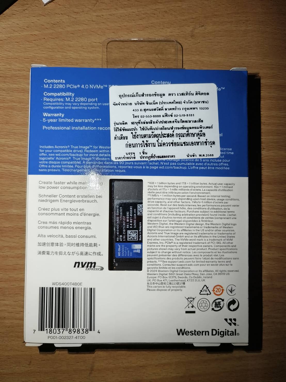 4 TB SSD (เอสเอสดี) WD BLUE SN5000 - PCIe 4x4 NVMe M.2 2280 (WDS400T4B0E)