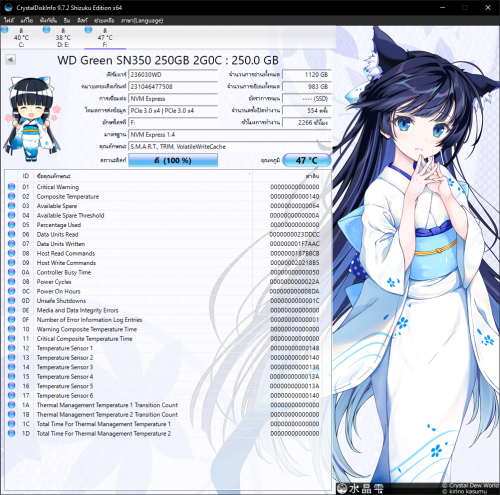 รายการที่ 7 250 GB SSD M.2 PCIe 3.0 WD GREEN SN350 NVMe M.2 2280 ราคา 650 บาท
