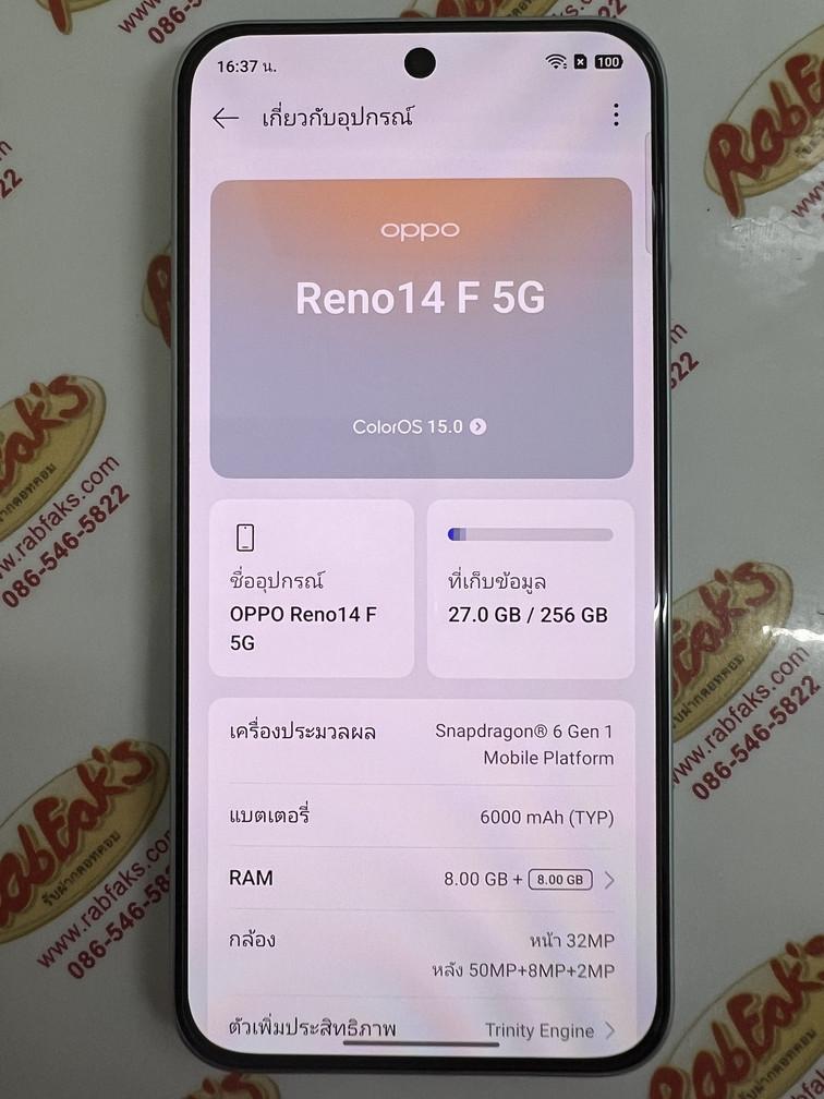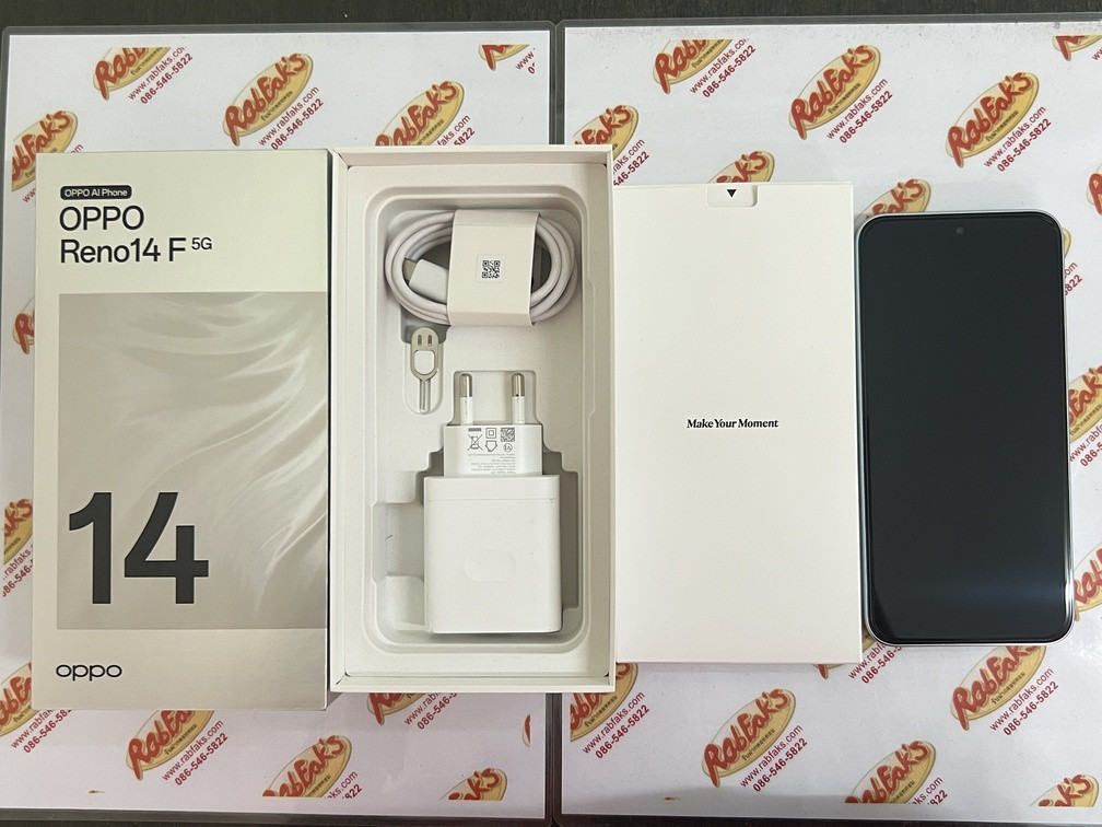 ประกาศขายโทรศัพท์มือถือสมาร์ทโฟนรุ่นใหม่ล่าสุด OPPO Reno 14F 5G Ram8GB Rom256GB จอ6.57นิ้ว ประกันยาวๆหมดวันที่ 7 กันยายน 2569 ปีหน้า การันตีความใหม่ เครื่องสีฟ้า โอปอล อุปกรณ์ครบกล่องมี ตัวเครื่อง+หัวชาร์จ+สายชาร์จ+เข็ม+คู่มือ+กล่อง จอติดฟิล์มให้แล้วครับ รีเซ็ตเครื่องให้ใหม่แล้วพร้อมใช้งานได้ทันที ไม่ติดAccount Gmail ไม่ติดสัญญารายเดือน